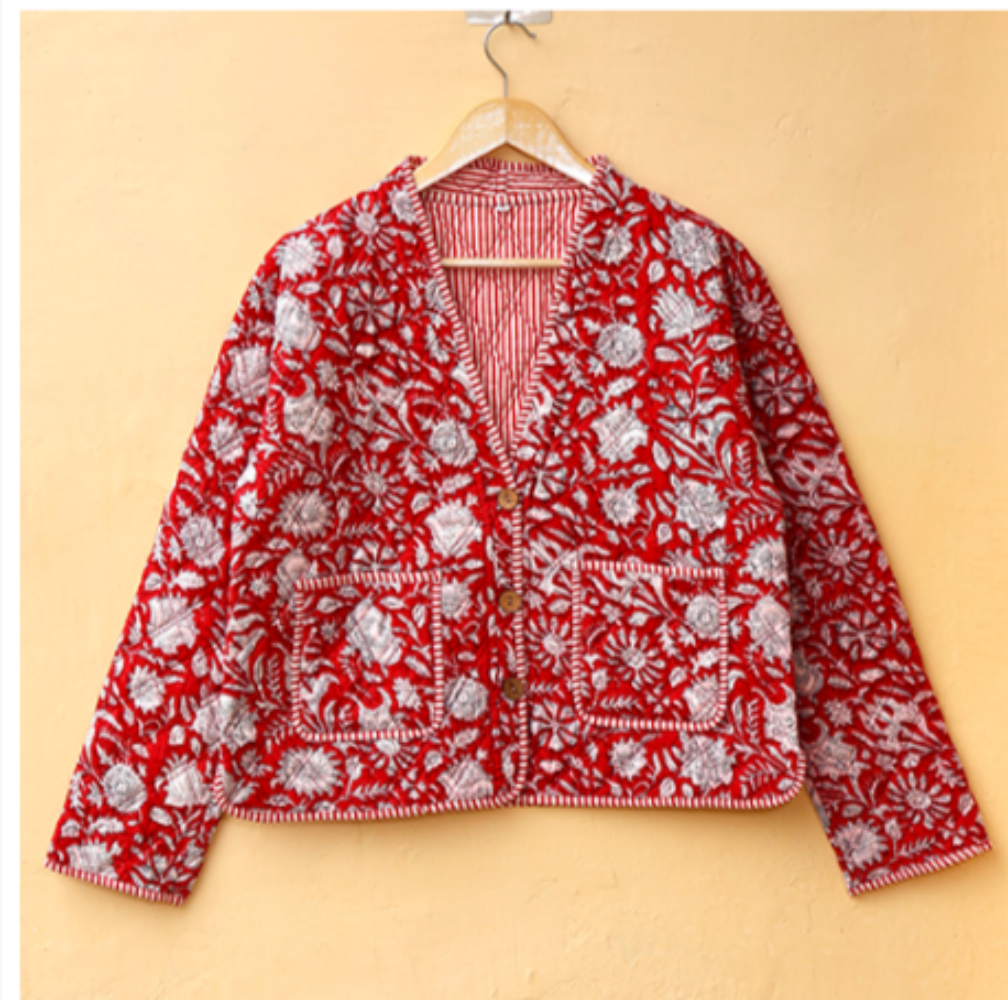 FAQs of Red And White Hand Block Print Boho Jacket: